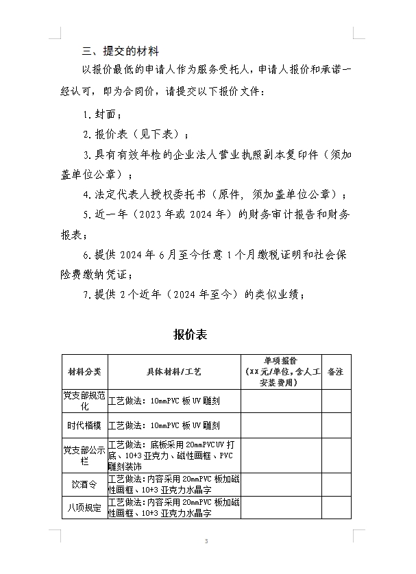 首頁(yè)>信息公開>昆明羅泊河水庫(kù)建設(shè)管理有限責(zé)任公司黨支部規(guī)范化陣地建設(shè)提升改造服務(wù)詢價(jià)函